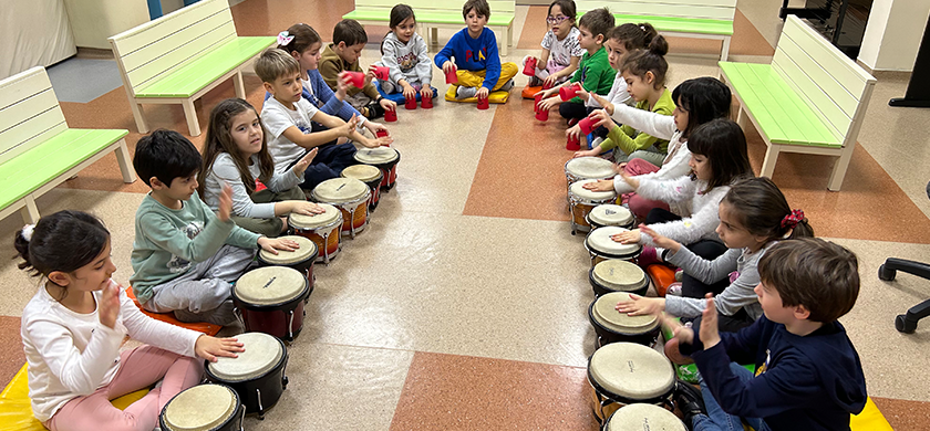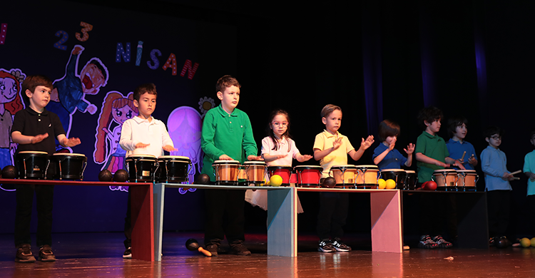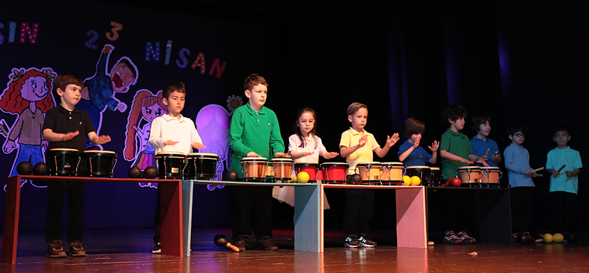 Anaokulu 4 ve 5 yaş gruplarına yönelik yapılan ritim derslerinde; öğrencilerin el göz koordinasyonu ve sosyal gelişimine etki eden Orff Schulwerk yaklaşımını uygulanır. Bu yaklaşımla birlikte öğrencilerle beden perküsyonu ve ritim enstrümanlarıyla çalışmalar yapılır. Dans ve dramanın katkılarıyla oyun, dans ve müzik çalışmalarına yer verilir. Öğrencilerimizin kendilerini ifade edebilmeleri ve öğrendiklerini paylaşabilmeleri amacıyla farklı zaman dilimlerinde etkinlikler gerçekleştirilir.