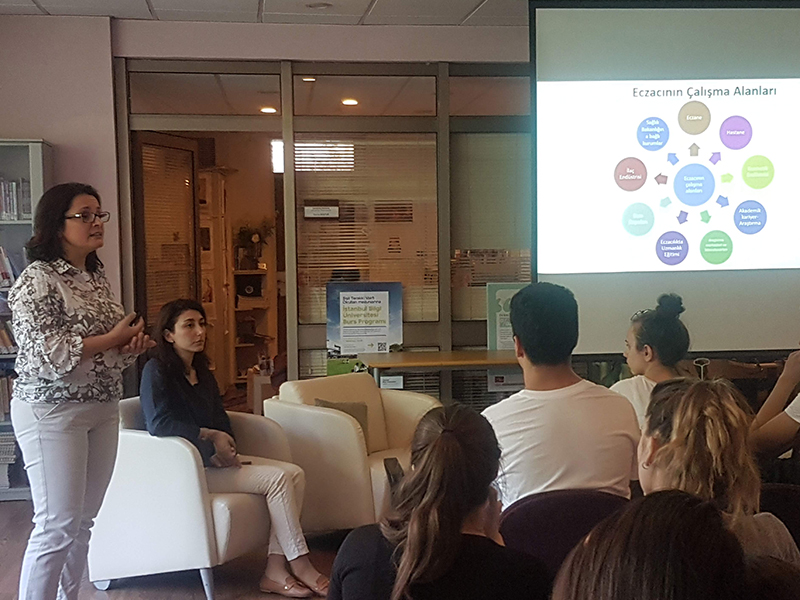Bu doğrultuda düzenlenen “Meslek Tanıtımı” etkinliğinde Özden, İstanbul Üniversitesi Eczacılık Fakültesi hakkında kısa bir bilgilendirme yaparak konuşmasına başladı. Eczacı kimdir?, Ne iş yapar? sorularına cevap verdikten sonra, toplumda eczacılık mesleği hakkındaki algıdan söz etti. Esas görev tanımlarının aslında “Sağlık Danışmanı” olduğunu dile getirdi.