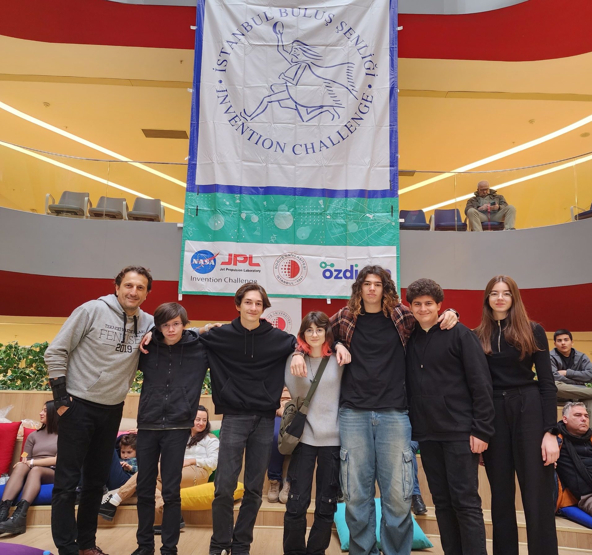 Öğrencilerimiz Gizem Meydan (10A), Murat Ege Terekli (10A), Kerem Elitaş (10A), Çınar Beyhan (10A), Güneş Bozkırlıoğlu (10A), Defne Sural (11A); fizik öğretmenimiz Onur Özkul rehberliğinde yarışma için 5 metre uzaklıktaki bir çöp kutusuna A4 kağıdını en fazla 4 farklı enerji türünü kullanan ve ardışık 7 eylemle atabilen bir düzenek tasarlayıp üretti. Bu eylemlerde cismin momentumu 0.8 kg. m/s’yi aşmaması gerektiği için öğrencilerimiz tasarlama ve deney aşamasında video analiz yönteminden yararlandı.