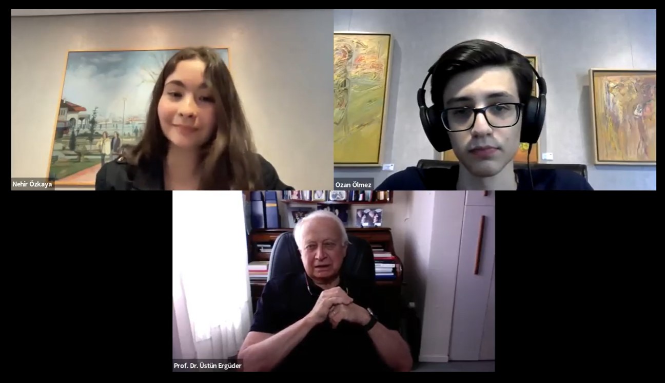 Her iki yerleşkemizden lise hazırlık, 9, 10 ve 11. sınıf öğrencilerimiz, 30 Mayıs Pazartesi günü “Prof. Dr. Üstün Ergüder Gençlerle Gençliği Konuşuyor” adlı web seminerimize katıldı. 19 Mayıs Atatürk’ü Anma Gençlik ve Spor Bayramı etkinlikleri kapsamında düzenlenen web seminerinde Prof. Dr. Üstün Ergüder’e, öğrencilerimiz Nehir Özkaya (Fen 10A) ve Ozan Ölmez (12A) eşlik etti. Baştan sona soru cevap formatında ilerleyen söyleşide moderatör öğrencilerimizin dışında, dinleyici öğrencilerimiz de sorularını yönelttiler.