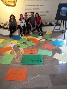 Sonraki aşamada, plastik çöpünün okyanuslara karışması, mikroplastiklerin gezegenimiz ve insanlık için yarattığı tehlikeler konusunda öğrencilerimizde farkındalık yaratacak ve çözüme katkı sağlayacak bir gereklilik olarak tek kullanımlık pet şişeler yerine matara kullanımını teşvik edecek afişler hazırladılar ve lise koridorlarında öğrencilerle paylaştılar.