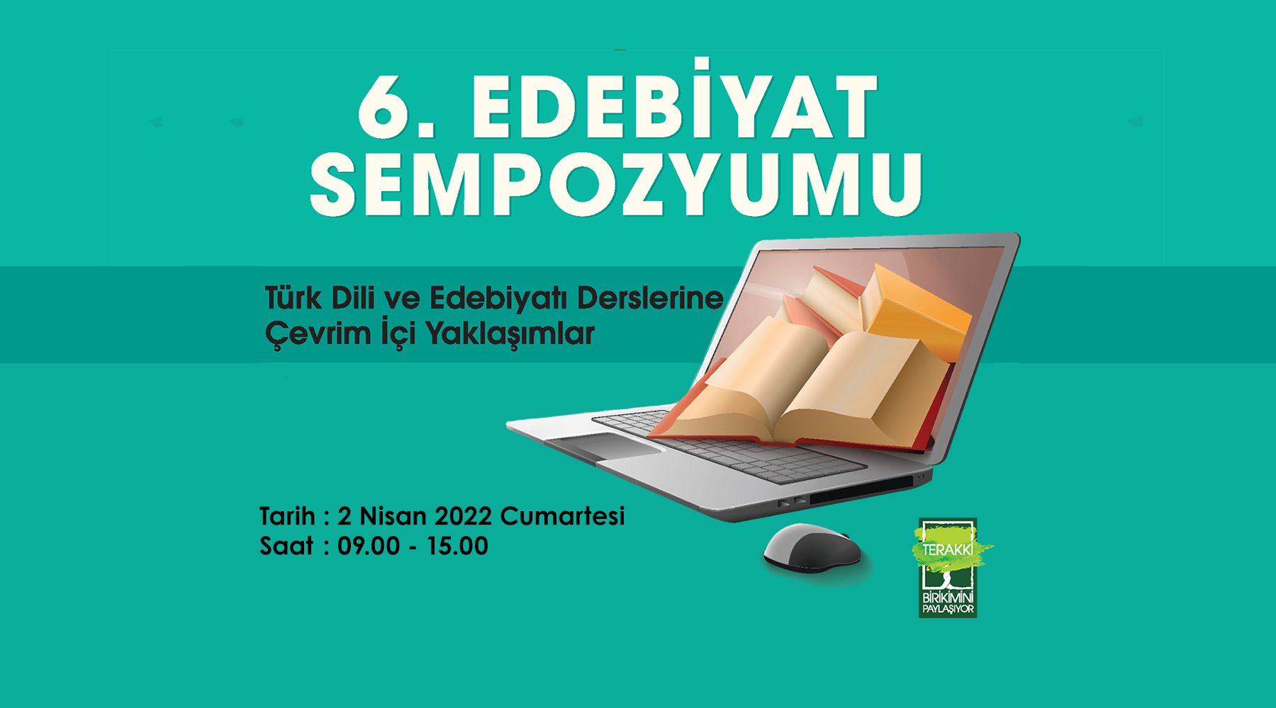 Terakki, İstanbul ili genelinde Türkçe ve edebiyat öğretmenleriyle Türkçe ve Edebiyat eğitimindeki uygulamaları, yenilikleri paylaşmak amacıyla 2 Nisan Cumartesi günü çevrim içi ortamda 6. Edebiyat Sempozyumu’nu gerçekleştirecek. Sempozyumda konuklarımız Prof. Dr. Baki Ayhan, Prof. Dr. Oktay Yivli, Tolga Gümüşay, Dr. Mahmut Babacan ve Turgay Fişekçi olacak. Ayrıca iki ders tasarımı örneğine de yer verilecek.