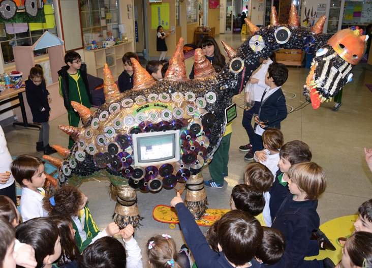 Görsel Sanatlar dersinde PYP “İyi ki Var” ünitesi kapsamında gerçekleştirdikleri projeye “Teknolojinin Olumlu ve Olumsuz Etkileri” sorgulama maddesinden yola çıkarak başladılar. Tekno-Dino’yu yaratırken geri dönüştürülebilir atık kutularımızdan topladıkları malzemeleri kullanan öğrencilerimiz, teknolojinin ekolojik dengeye olumsuz etkisini dinozorlar çağıyla ilişkilendirerek anlattılar.
