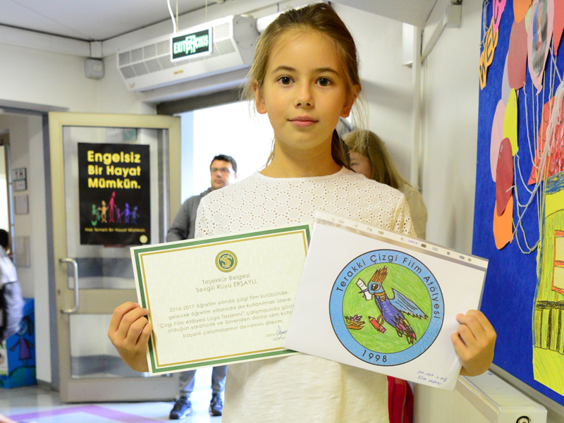 Levent Yerleşkemizden ilkokul öğrencimiz Rüya Erşaylı (4E), Çizgi Film Atölyemiz için 2016 – 2017 öğretim yılında bir logo tasarladı. Öğrencimiz bu logoda, geçtiğimiz öğretim yılında kendi tasarladığı, “Prensesin Şarkısı” adlı müzikal çizgi filmimizdeki kuş karakterini kullandı. Çizgi Film Atölyemizin 20. yılına denk gelen öğrencimizin ürettiği bu logo, artık çizgi filmlerimizde yerini alacak.