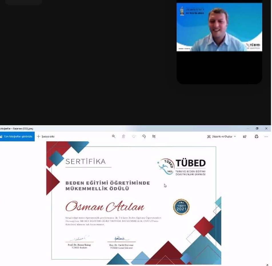 Levent Yerleşkemizden İlkokul Beden Eğitimi ve Spor Öğretmenimiz Osman Atılan, sergilediği yenilikçi öğretim performansıyla Türkiye Beden Eğitimi Öğretmenleri Derneğinden (TÜBED) ‘Beden Eğitimi Öğretiminde Mükemmellik Ödülü’nü almaya hak kazandı. Ödül, 19 Mayıs Atatürk’ü Anma Gençlik ve Spor Bayramında TÜBED’in bu yıl çevrim içi düzenlediği Uluslararası Beden Eğitimi ve Spor Öğretmenliği Kongresi’nde takdim edildi.