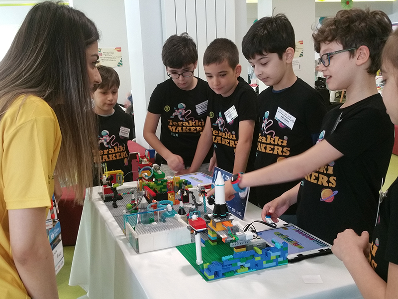 6 – 10 yaş arasındaki çocukların, bilim ve mühendislik alanlarında ilgisini çekmek ve gelişimlerini sağlamak amacıyla yapılan fuarda Terakki Makers, 4 – 8 hafta içinde Bilişim Teknolojileri öğretmenleri Ayşegül Ayhan ve Tuba Balsak’ın rehberliğinde çalışarak, motorla hareket eden bir LEGO modeli inşa edip programladılar.