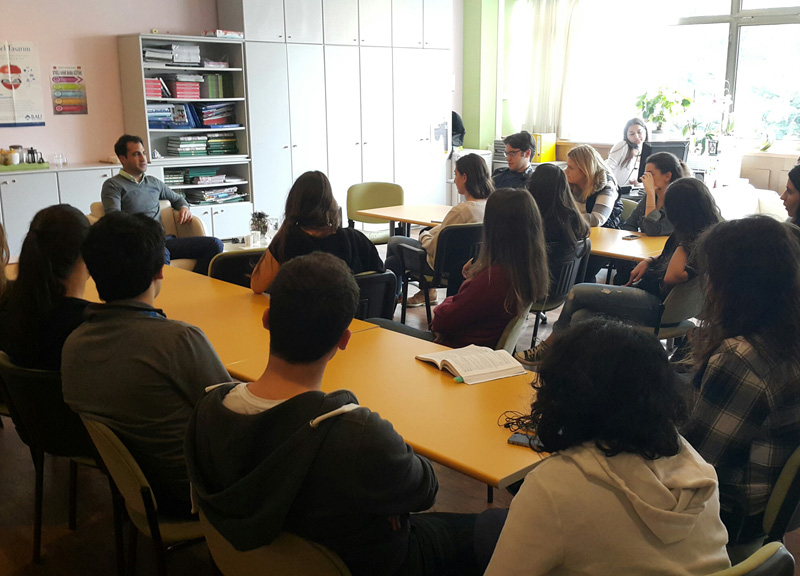 Üniversitede “Uluslararası İlişkiler” bölümünde okumak isteyen lise öğrencilerimiz, Rehberlik ve Psikolojik Danışma Servisimizin 19. Kariyer Günleri etkinlikleri kapsamında 14 Nisan Salı günü Bilgi Üniversitesi Kurumsal İlişkiler Direktörü Murat Saydam’la bir araya geldi.