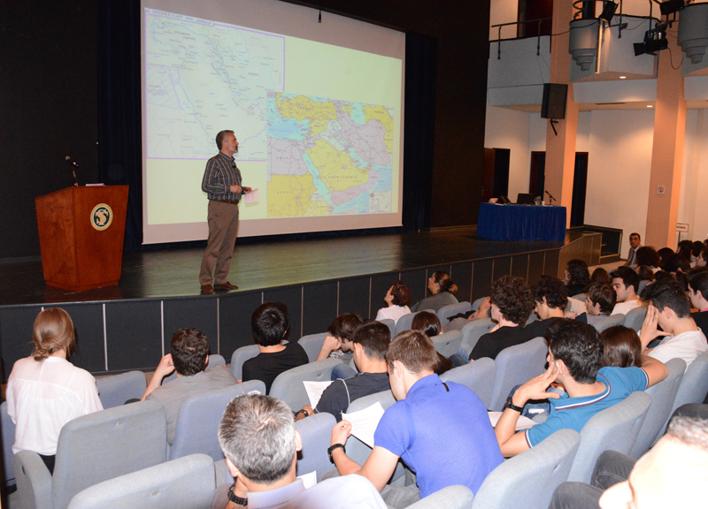 Prof. Dr. Gencer Özcan Ortadoğu ile ilgili söylemlerde, yaklaşımlarda önyargıların, yaratılan yanlış algıların önemli olduğunu söyleyerek bunların özellikle batı tarafından, sömürgecilik döneminden kalma bir zihniyetle yaratıldığını ve bunlar üzerinden bölge ile ilgili politikalar üretildiğine dikkat çekti. Üretilen bu politikalarla ilgili günümüzden örnekler vererek, görünüşe her zaman inanmamak, gelişmelerin ardındaki nedenleri sorgulamak gerekliliğini vurguladı. Ortadoğu’daki gelişmelerle ile ilgili bilgilendirmelerde bulunarak, bu gelişmelerin görünür ve görünmeyen nedenleri üzerinde durdu. Öğrencilerden gelen soruları cevaplayarak, konuşmasına son verdi.