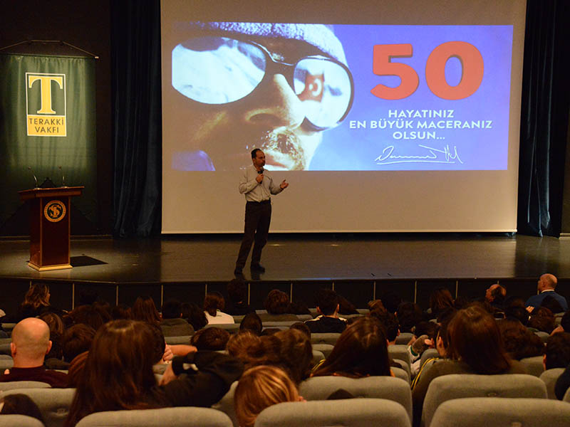 Levent Yerleşkemizde ortaokul 8. sınıf öğrencilerimiz, 8 Ocak Çarşamba günü Milli Sporcu, Profesyonel Dağcı, Yazar ve Fotoğrafçı olan Terakkili mezun Ali Nasuh Mahruki’yle Terakki Vakfı Kültür Merkezi K1’de söyleşti.