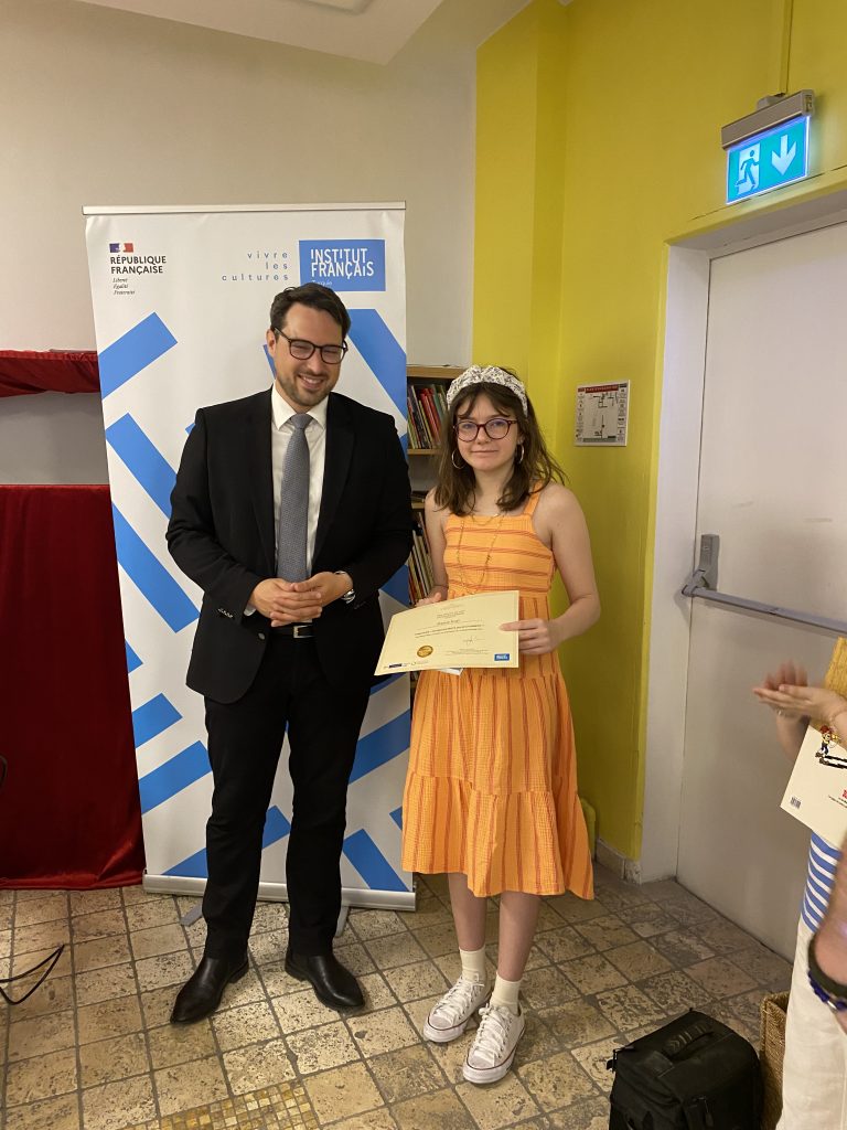 Levent Yerleşkemizden ortaokul öğrencimiz Deniz İnal (7G), Fransız Enstitüsünün Frankofoni Baharı kapsamında Şubat – Mart aylarında gerçekleştirdiği, 155 eserin yer aldığı “Dis-moi 10 mots (Bana 10 Kelime Söyle)” adlı kelimeleri görselleştirme yarışmasında ortaokul kategorisinde Jüri Özel Ödülü aldı. Öğrencimize ödülü, 28 Mayıs Cumartesi günü Fransız Kültür Merkezi’nde Fransızca Dili İşbirliği Ataşesi Vincent Brousse tarafından takdim edildi.