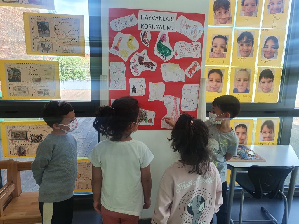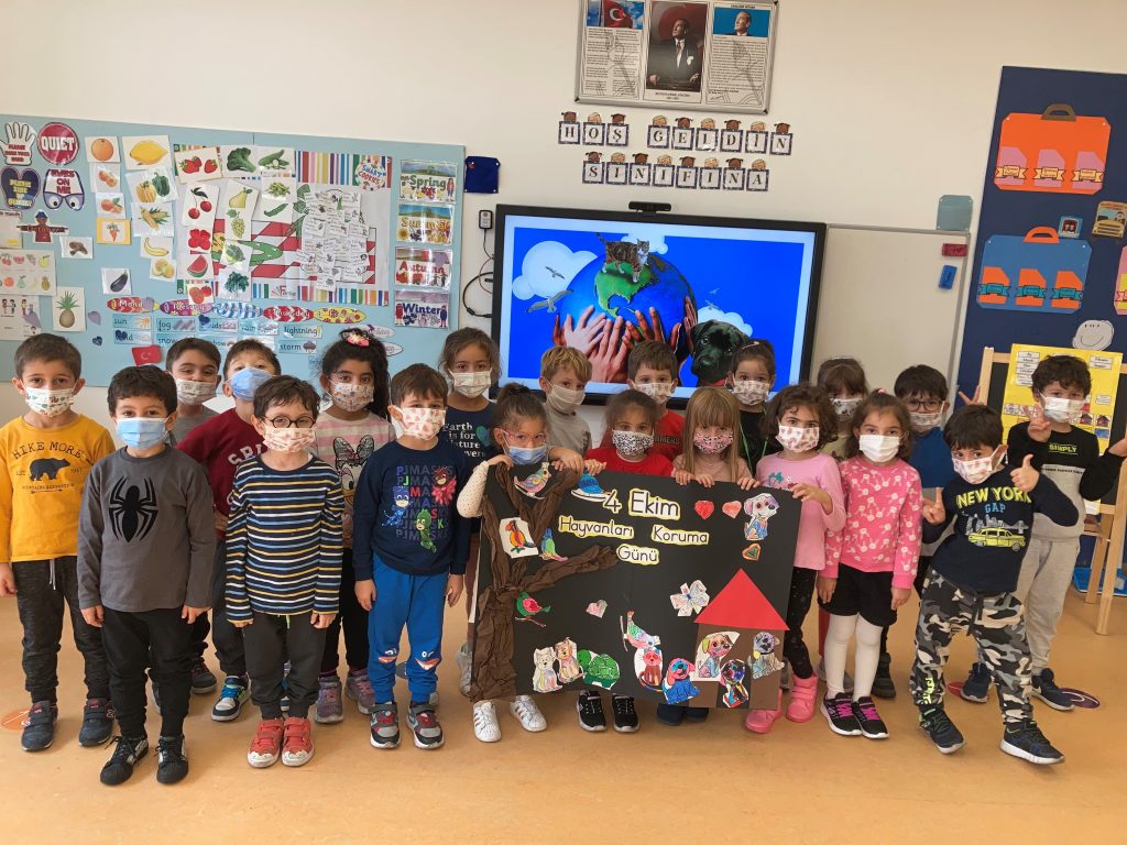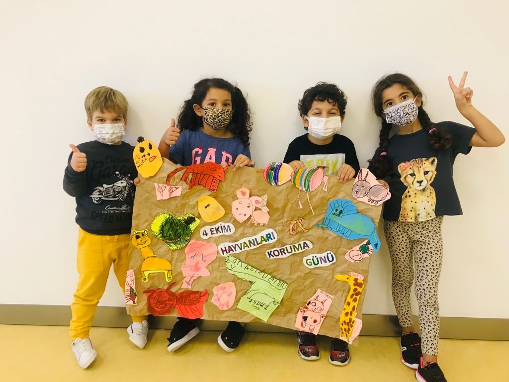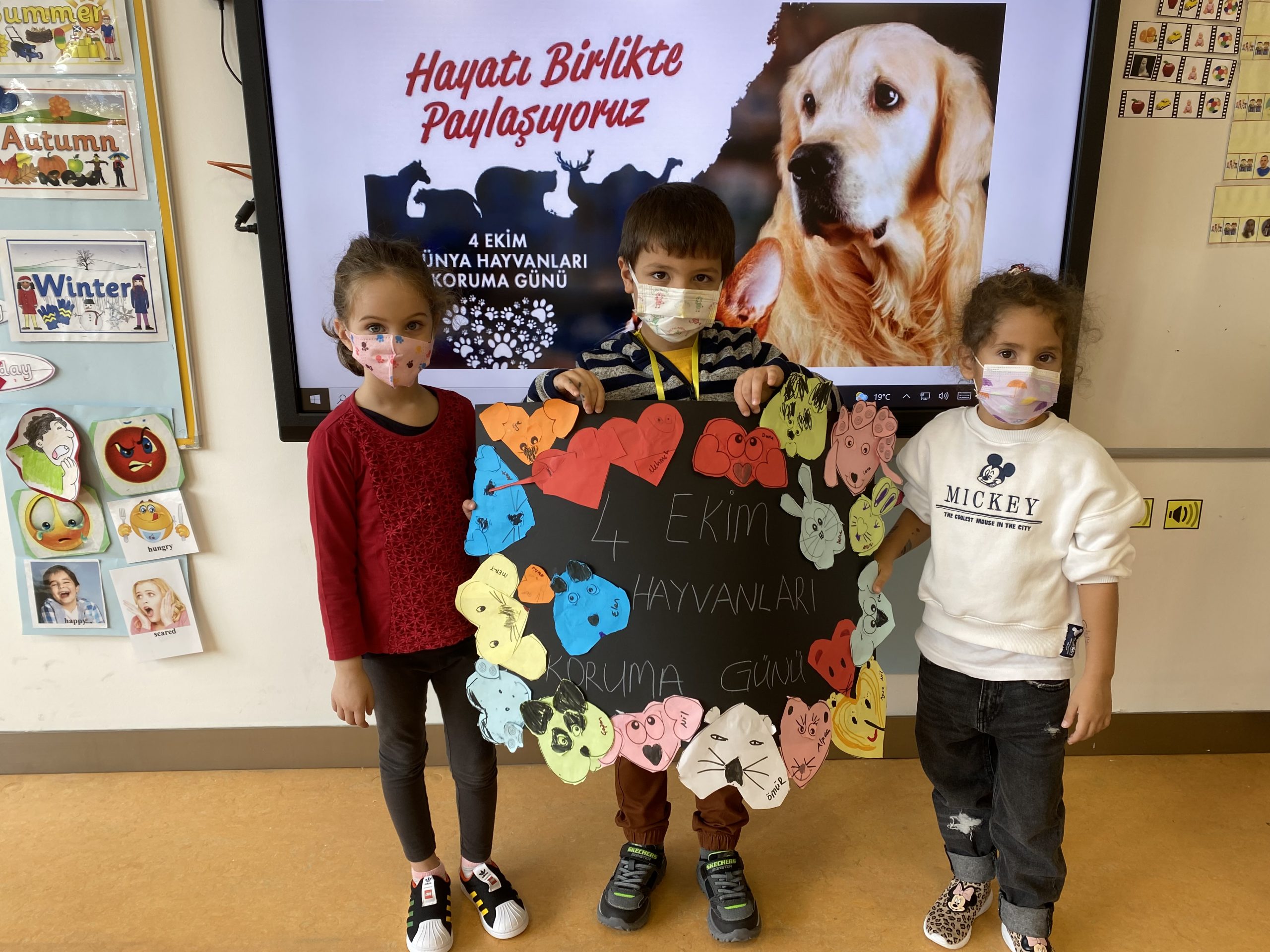 Anaokulu 6 yaş çocuklarımız, 4 Ekim Hayvanları Koruma Günü’nde öğretmenleriyle günün anlam ve önemine dair kitaplar okuyup sohbet ettiler. Evlerinde ve çevrelerinde yaşayan canlılardan yola çıkarak dünyamızı paylaştığımız hayvan dostlarımızla ilgili sorumluluklarını ve onlar için neler yapabileceklerini ifade ettiler. Sınıf posterleri hazırlayarak ‘Hayvanları Koruma Günü Afiş Sergisi’nde diğer gruplardan arkadaşlarıyla çalışmalarını paylaştılar. Ayrıca, tüm yaş gruplarından çocuklarımız ise Tüm anaokulu çocuklarımız da “Hayvanlar Buluşuyor” adlı yaratıcı drama etkinliğinde sokakta yaşayan hayvanların hayatlarına dair farkındalık içeren oyunsu süreçte kendi yaşantı ve deneyimlerini paylaşma fırsatı yakaladılar.