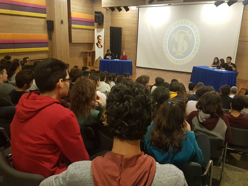 Tepeören Yerleşkemizde lise 11 ve 12. sınıf öğrencilerimiz, Psikolojik Danışma ve Rehberlik Servisimizin düzenlediği 23. Kariyer Günleri kapsamında 19 Ekim Cuma günü mezunlarımızla buluştu. Terakkili mezunlar; Koç Üniversitesi Tam burslu Batu Kaan Dilaver, Boğaziçi Üniversitesi Kimya Mühendisliği Ece Özbek, Yeditepe Üniversitesi Hukuk Fakültesi % 50 Burslu Eren Kutay Bahtiyar, Bilgi Üniversitesi Psikoloji Bölümü Dilge Çağan Yavuz ve Hacettepe Üniversitesi Çevre Mühendisliği Deniz Babaoğlu’ydu. Ayrıca Ankara’da olan ve o günkü etkinlikte bulunamayan ODTÜ Makine Mühendisliği Bölümünden Selin Avcı, Kaan Özen ile Yeditepe Üniversitesi Tıp Fakültesi’nde okuyan Ozan Ertam da çektikleri videolarla öğrencilerimize söylemek istedikleri mesajları ulaştırdılar.