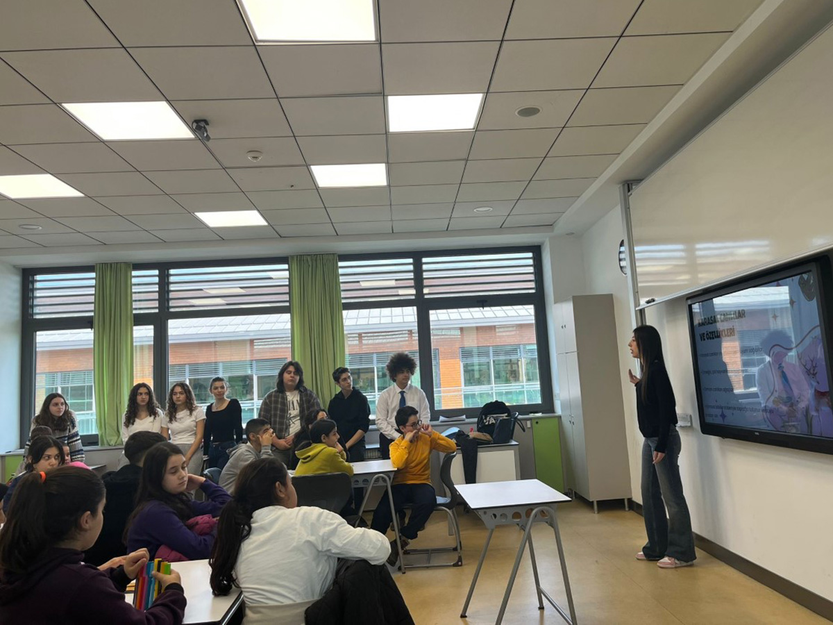 Türk Dili ve Edebiyatı Bölümünden Meltem Dilek Kayak ve Elvin İpek rehberliğinde düzenlenen “Rollerin Gücü” atölyesinde; 10IBF sınıfından Iraz Elif Kıraç, Melis Derin Şimşek, Anıl Şimşek, Beyza Çamlı, Derin Halatçı, Boğaç İzmit, Elif Reyyan Duman ve Güneş Aksoy aktif bir şekilde yer aldı. Bu interaktif atölyede; öğrencilerden “çiftçi”, “bilim insanı” ve “aktivist” gibi rollerden birini seçerek karasal yaşamın karşı karşıya olduğu sorunlara çözüm bulmaları istendi. Öğrenciler, bu roller doğrultusunda hazırlanan oyun kartlarını kullanarak yaratıcı fikirler geliştirdi ve doğaya duyarlı bireyler olarak sorumluluklarını keşfetti. Bu süreçte, öğrenciler yalnızca teorik bilgi edinmekle kalmadı; aynı zamanda takım çalışması, problem çözme ve eleştirel düşünme becerilerini de geliştirdi. Ayrıca, hayal güçlerini kullanarak tasarladıkları resimlerle, “Hayal gücünle dünyayı değiştirmeye var mısın?” sorusuna anlamlı birer yanıt verdiler. Atölye sonunda, öğrenciler hem doğaya dokunan hem de bireysel sorumluluklarını daha iyi kavrayan bireyler olarak gelecekte karasal yaşama duyarlı projeler üretme yönünde önemli kazanımlar elde etti.