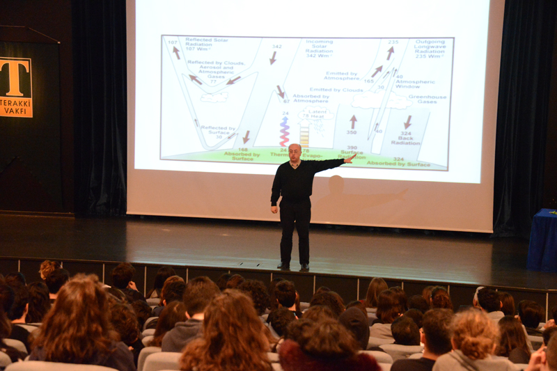 Boğaziçi Üniversitesi Fizik Bölümü Öğretim Üyesi ve İklim Değişikliği ve Politikaları Uygulama ve Araştırma Merkezi Müdürü Prof. Dr. Levent Kurnaz, 28 Mart Çarşamba günü Dünya Su Günü kapsamında Levent Yerleşkemizde Terakki Vakfı Kültür Merkezi K1’de konuğumuz oldu. Kurnaz, “Küresel Isınma – İklim Değişikliği Hayatımızı Nasıl Etkiliyor? ” konularında bilgi vermek ve bu büyük sorunun içeriğini konuşmak üzere lise ve fen lisesi 10. sınıf öğrencilerimizle buluştu.