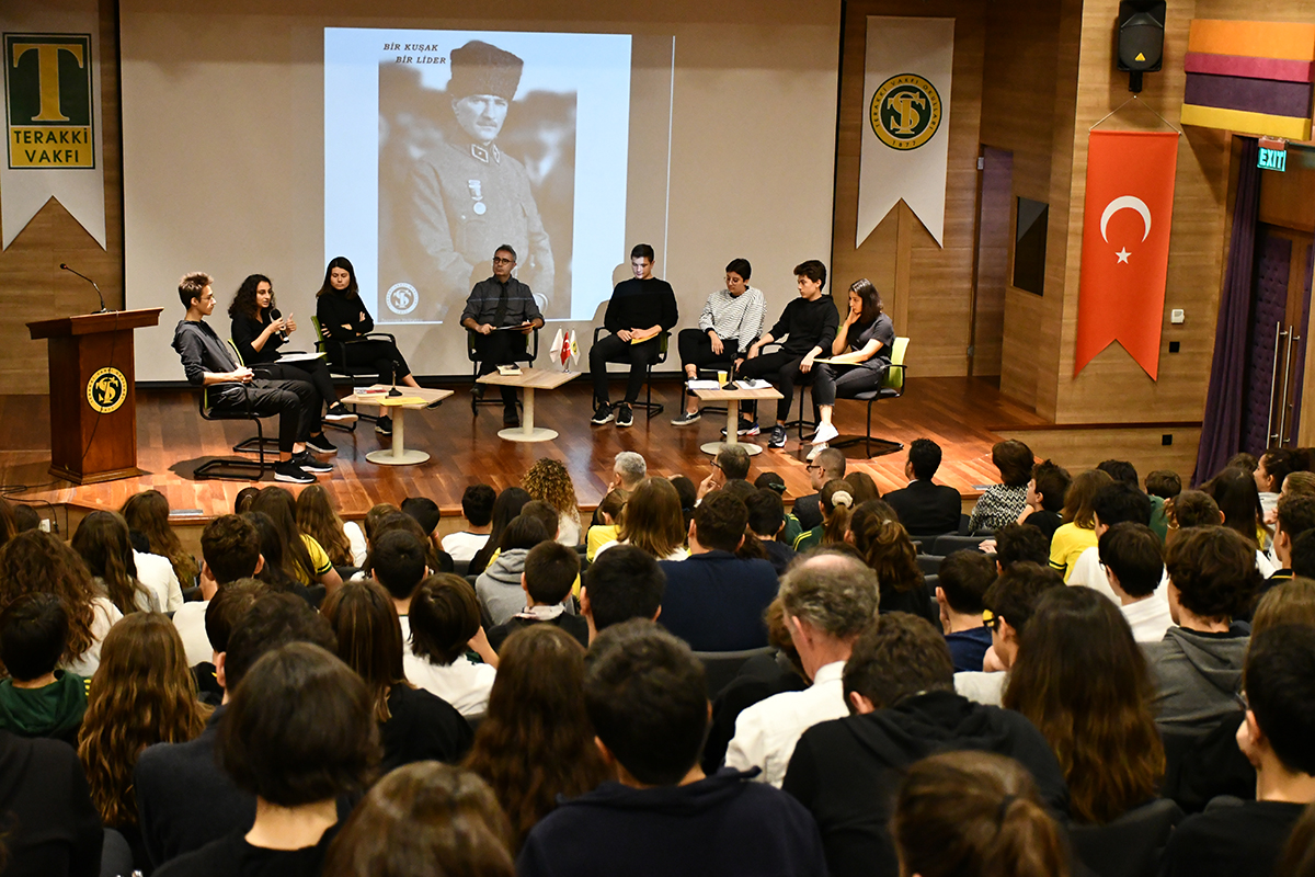 Tepeören Yerleşkemizde 10 Kasım Atatürk’ü Anma Günü kapsamında 7 – 8 Kasım tarihlerinde “Bir Kuşak Bir Lider” adlı bir panel gerçekleşti. Sosyal Bilimler Bölümünden Tarih öğretmenimiz Alişan Akpınar, Türk Dili ve Edebiyatı bölümünden öğretmenlerimiz Elif Şahin ve Arzu Ayar, bir 10 ve 11. sınıftan gönüllü öğrencilerimizle öğrenci paneli gerçekleştirmek üzere bir araya geldiler.