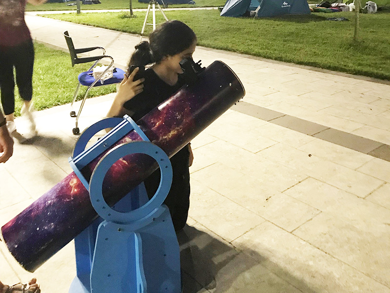 Saat 20:30 dan 00:30 kadar okulumuzdaki teleskoplarla önce uydumuz Ay ile gözlemleri başladı. Bu esnada teleskopların çalışma prensipleri ve görüntüleme yöntemleri üzerine bilgi sahibi oldular. Ay’ın yüzey şekillerinin isimleri ve coğrafi özelliklerini öğrendiler. Ay’ın ardından Jüpiter ve uydularından Europa ve Ganymede’yi gözlemlediler. Antares’i de gözlemledikten sonra takımyıldızlarının tespitini yapıp üzerinde konuştular.