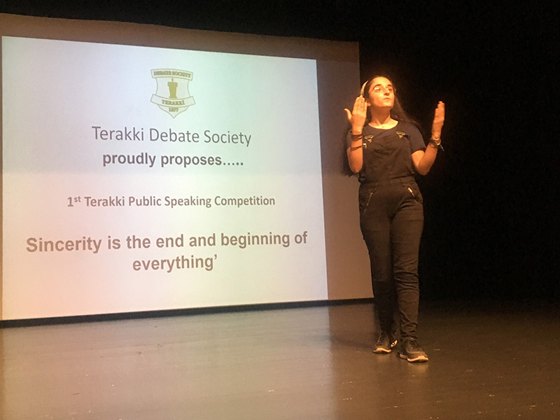 Lise İngilizce Bölümümüz ve ESU (English Speaking Union) Terakki Debate Society Kulübümüz, 10 Haziran Pazartesi günü 1. Terakki Public Speaking (Topluluk Önünde Konuşma) Yarışması düzenledi. Bu yarışma her iki yerleşkemizden lise öğrencilerimizle Terakki Vakfı Kültür Merkezi K2’de gerçekleşti.