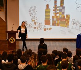 Otistik bireyleri daha iyi anlayabilmek için film önerilerini verdikten sonra bu alanda gönüllü bireylere ihtiyaç duyulduğunu ifade etti. Ardından, öğrencilerimizin sorularını yanıtladıktan sonra söyleşi sona erdi. Permakültür Kulübünden öğrencilerimiz de okulumuz adına Nehir Merinoslu’ya katılımı ve paylaştığı bilgilerden dolayı teşekkür ederek, kulüpte kendi hazırladıkları file çanta içinde, yine kulüpte öğrencilerimizin hazırladığı doğal ürünlerden (reçel, sirke ve turşu) oluşan bir hediye paketini sundu.