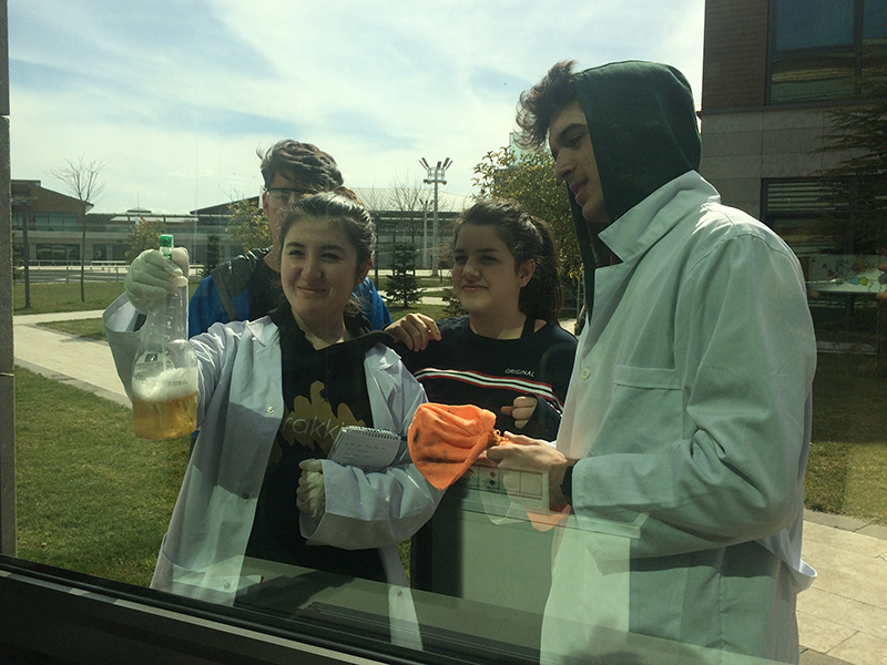 Tepeören Yerleşkemizden lise 10. sınıf öğrencilerimiz, Kimya ve Biyoloji dersleri kapsamında alternatif temizlik malzemeleri ürettiler ve bu temizlik malzemelerinin kirleri çıkarmadaki etkisini test ettiler. Üç aşamada gerçekleştirilen bu disiplinlerarası çalışmanın birinci aşamasında öğrencilerimiz, fabrikalarda üretilen temizlik malzemelerinin kimyasal içeriğini ve bu temizlik malzemelerine alternatif bir temizlik malzemesinin (bulaşık deterjanı, çamaşır deterjanı, sabun, yumuşatıcı, yüzey temizleyici) nasıl üretilebileceği hakkında bir ön araştırma yaptı. Öğrencilerimiz, ön araştırmalarını tamamladıktan sonra ikinci aşamaya geçtiler ve 14 Mart Perşembe günü Gebze Teknik Üniversitesi Çevre Mühendisliği Bölümü’nü gezdiler.