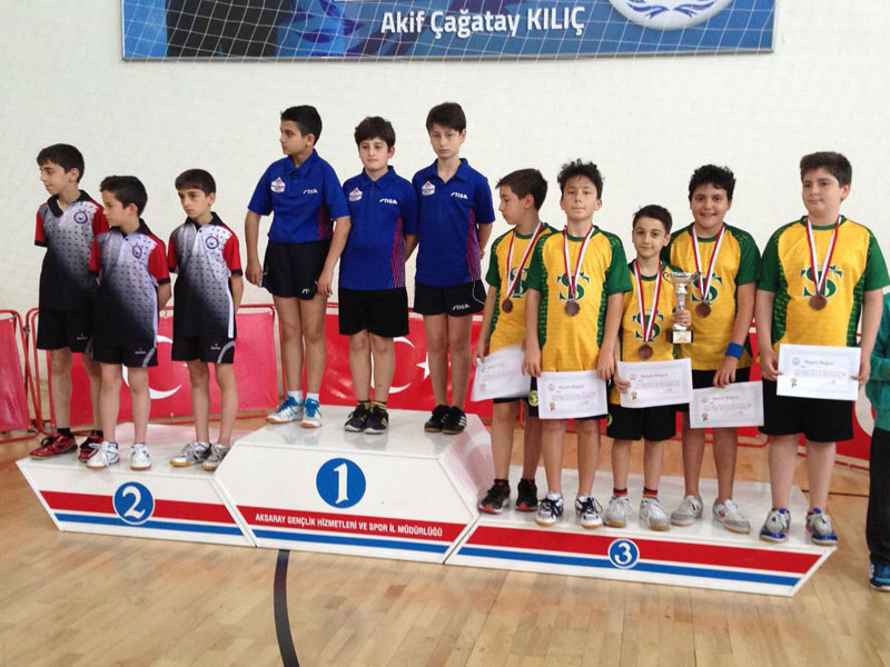 Levent Yerleşkemizden Küçük Erkek Masa Tenisi Takımımız, Gençlik ve Spor Genel Müdürlüğü tarafından 18 – 21 Mayıs tarihleri arasında düzenlenen Okullar arası Küçükler Masa Tenisi Türkiye Birinciliği müsabakalarında 97 okul takımı arasından Türkiye 3.sü oldu.
