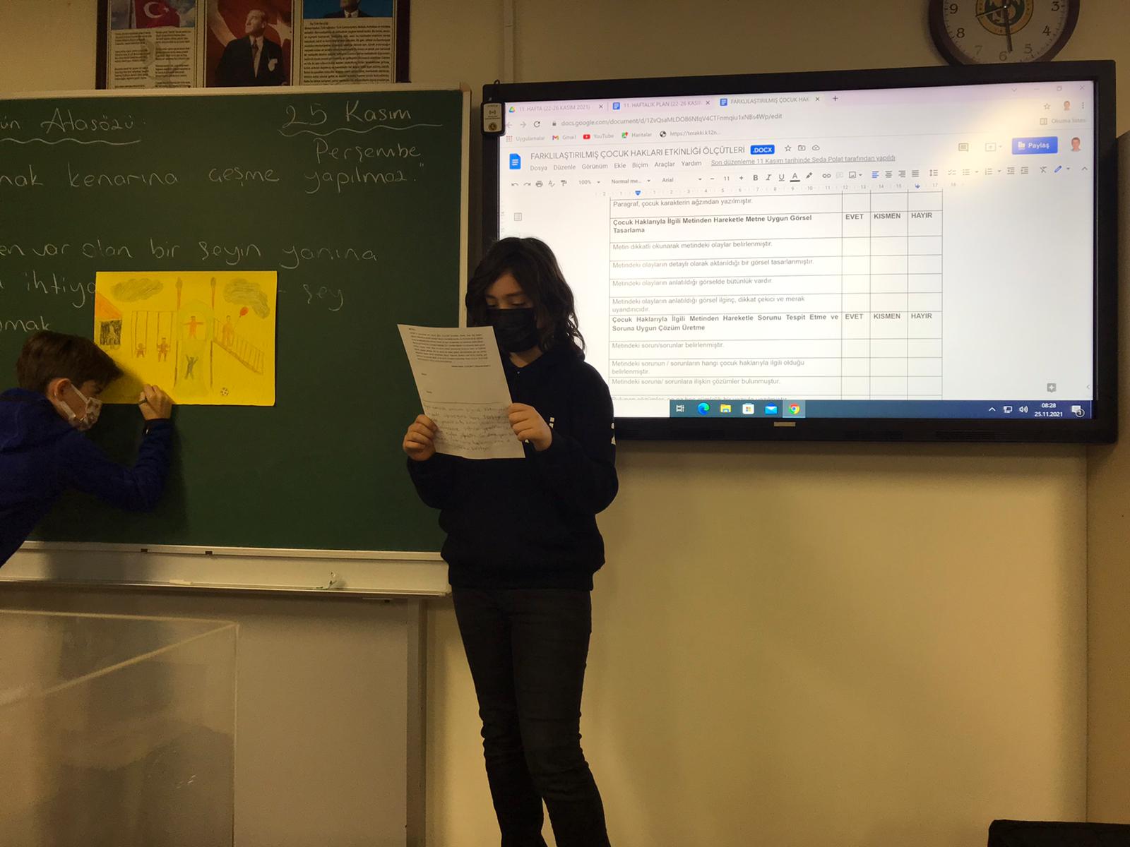 “Farklılaştırılmış Çocuk Hakları Etkinlikleri”ni hazırlayan öğrencilerimiz sınıf arkadaşlarına sunumlarını yaptılar. Böylece hakları ihlal edilmiş çocukların sesi oldular.