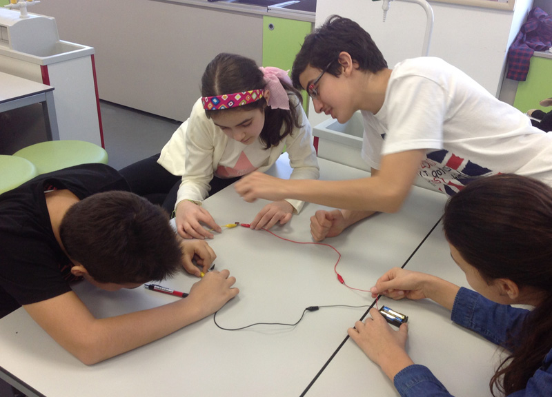 Atölyenin birinci aşamasında öğrencilerimiz, elektrik konusu ile ilgili temel kavramları, günümüz teknolojisine uygun led ışıklar, ışığa bağımlı dirençler, baskılı devreler gibi geri dönüşümlü malzemelerle yaparak yaşayarak öğrendiler. İkinci aşamada ise edindikleri temel bilgilerle, baskılı bir devre üzerine çeşitli devre elemanlarını yerleştirerek ışığa giden robotlarının iskeletini oluşturdular. Öğrencilerimizin oluşturduğu robot iskeletleri, fen bilimleri öğretmenlerimiz Aylin Sarı ve Saadet Tarakçı lehimleyip son işlemlerden geçirdiler ve öğrencilerimize teslim ettiler.