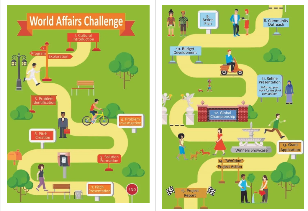 Amerika’nın Kolorado eyaletinin başkenti Denver merkezli The World Affairs Challenge (WAC), Birleşmiş Milletler Sürdürülebilir Kalkınma Hedefleri doğrultusunda küresel sorunlara akılcı ve uygulanabilir çözümler bulmayı hedefleyen, ortaokul ve lise öğrencilerine yönelik hazırlanmış çevrim içi uluslararası bir program ve yarışmadır. Her yıl farklı bir tema hakkında 6-8 kişilik öğrenci grupları tema ile bağlantılı bir problem belirler, problem üzerine araştırma yaparlar, araştırmaları doğrultusunda ilgili probleme uygulanabilir bir çözüm ararlar ve çalışmalarını içeren bir sunum hazırlarlar. Bu yılın teması ise “Water Nexus” (Su Bağı) idi.