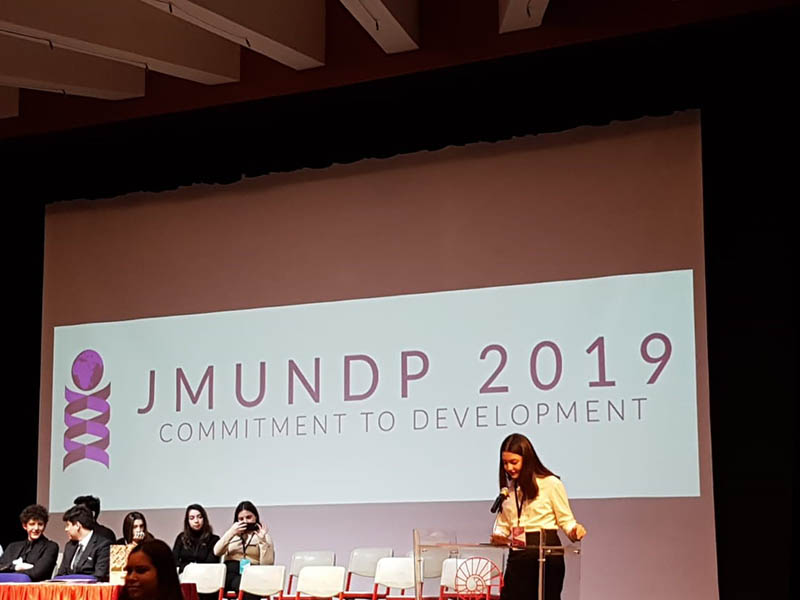 Her iki yerleşkemizden ortaokul 6 ve 7. sınıf JMUN (Junior Model United Nations) Kulübü öğrencilerimiz, 15 – 17 Mart tarihleri arasında Koç Okulları’nda gerçekleştirilen JMUNDP Konferansı’na katıldı. Birleşmiş Milletler’in çalışmalarını simülasyon yoluyla öğretmeyi amaçlayan JMUN Kulübünde öğrencilerimiz, kulüp çalışmalarımız boyunca diplomat kimliğine girip araştırma, münazara ve yazı çalışmaları sonucunda sorunlara gerçekçi çözümler üretmeye çalıştılar.
