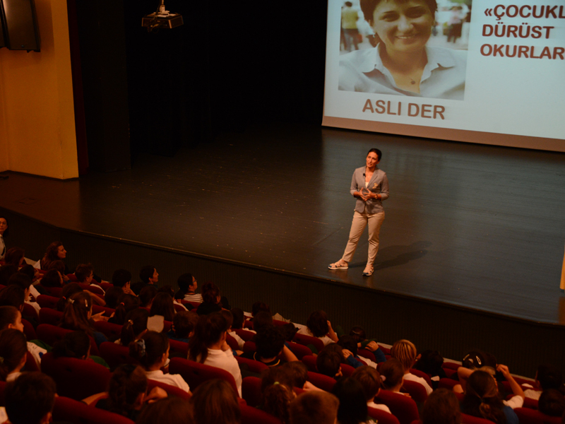 Ortaokul 5. sınıf öğrencilerimiz, Türkçe Bölümümüzün düzenlediği Dil Bayramı etkinlikleri kapsamında “Büyük Tuzak” kitabını ilgiyle okudukları Yazar Aslı Der’le söyleşti. Bu söyleşi, 25 Eylül Salı günü Tepeören Yerleşkemizde, 26 Eylül Çarşamba günü ise Levent Yerleşkemizde gerçekleşti.