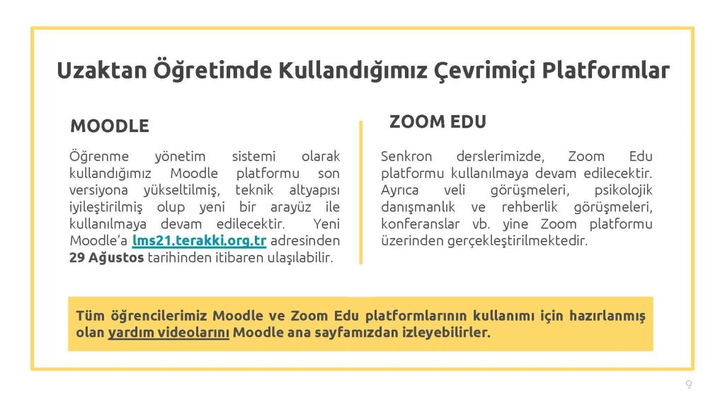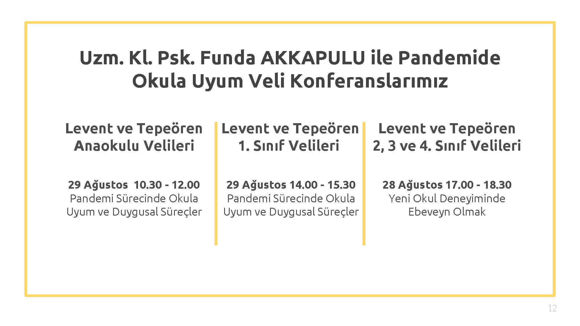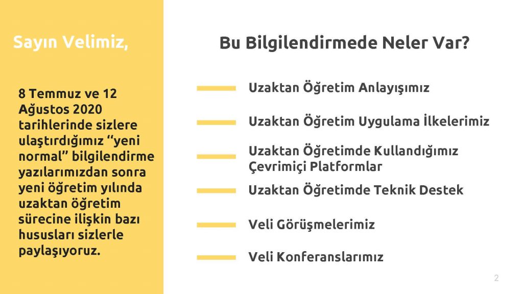 2020-2021 eğitim öğretim yılına başlamak için hazırlıklarımızı tamamlamak üzereyiz. İçinde bulunduğumuz sürecin değişkenliği ve akışkanlığı nedeniyle oluşabilecek yeni durumlar ve olasılıklar için de hazırlıklarımızı sürdürüyoruz. Şu an bulunduğumuz noktada yapılan çalışma ve planlamalarımızın bazıları ile ilgili sizleri kısaca bilgilendirmek amacıyla ekteki dosyayı paylaşmak istiyoruz.